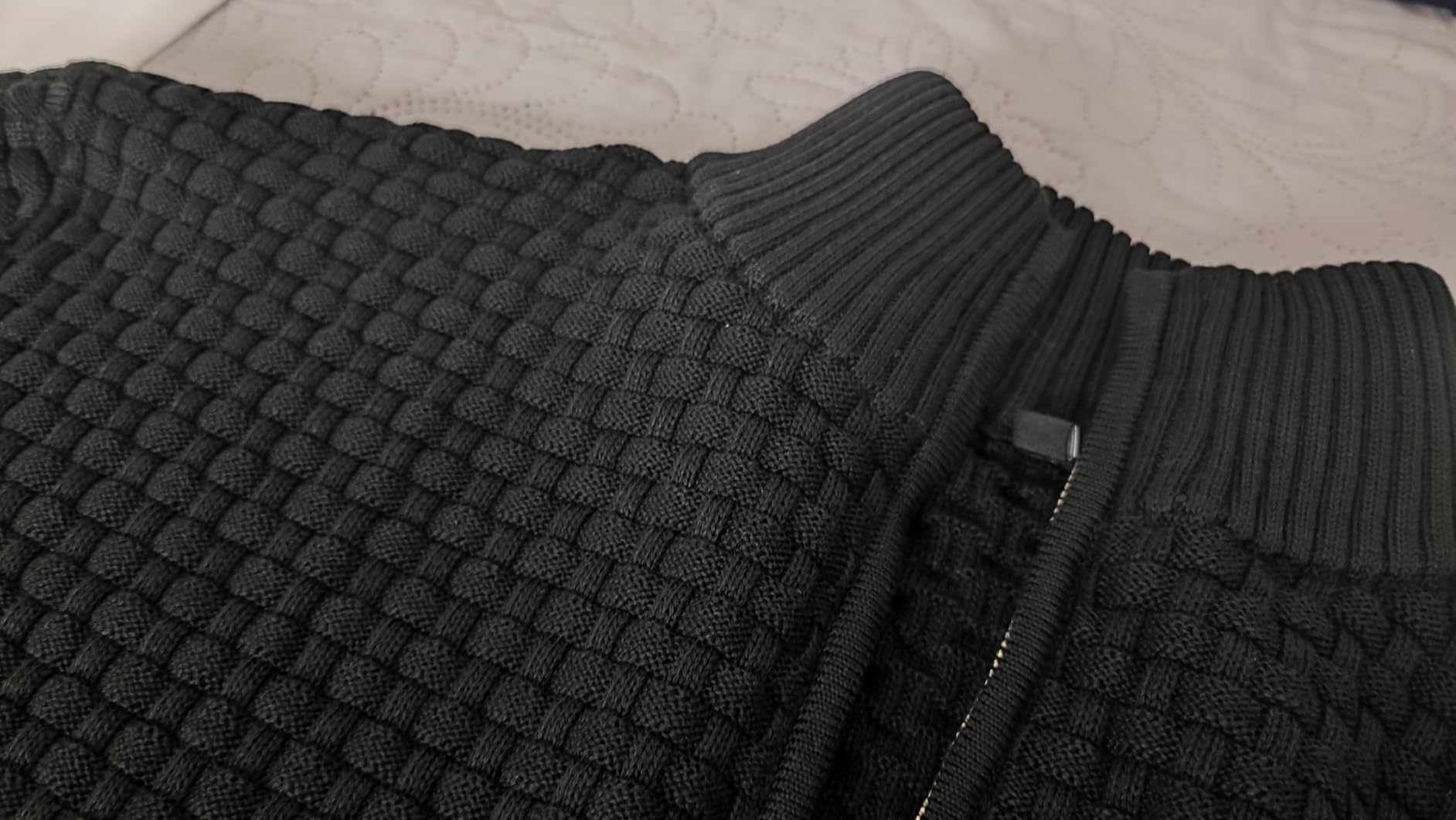Very comfortable against the skin and not itchy at all. The knit has a nice weight to it and the zip detail gives it a clean smart look.