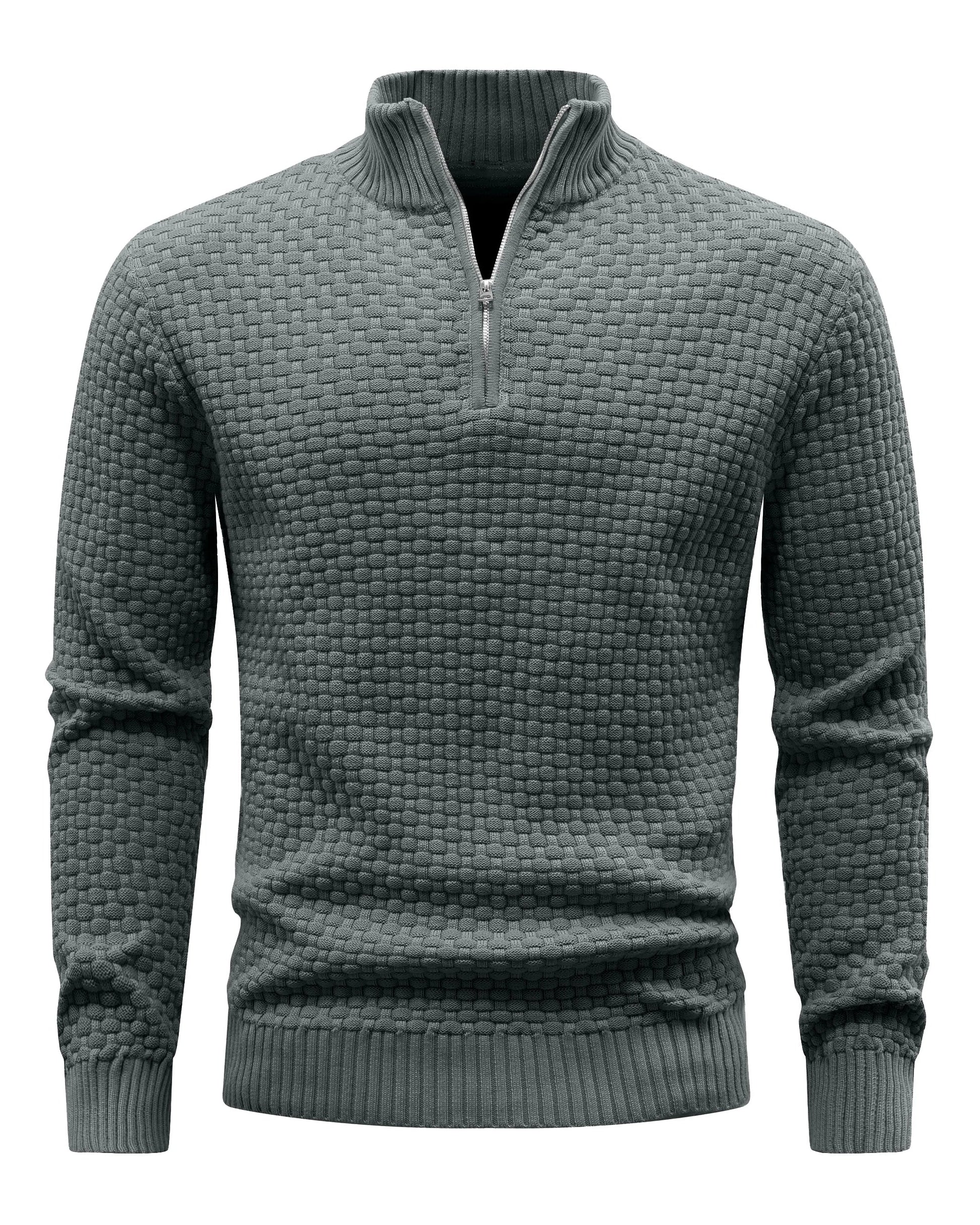 Really impressed with the quality of this knit. Soft and warm without feeling bulky. The quarter zip sits nicely at the neck and looks great layered or on its own.